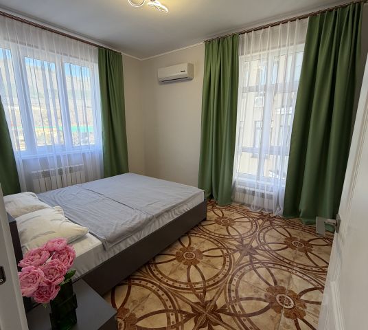 Комнаты изолированные площадью 25 м2 с эркером, 21 м2 с застекленным балконом, 15 м2; кухня 14.5 м2, два совмещенных санузла. Окна выходят на 3 стороны, кроме южной, что создает дополнительный комфорт в жаркую погоду.