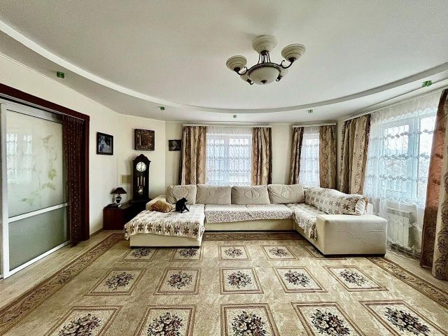 - 2 этаж гостиная с большим итальянским кожаным диваном (раскладывается), книжный шкаф, телевизор, сплит система, ванная с душем и санузлом, русская баня на дровах на 5-7 человек с печью HARVIA (дверка топки стеклянная выходит в гостиную в виде камина).