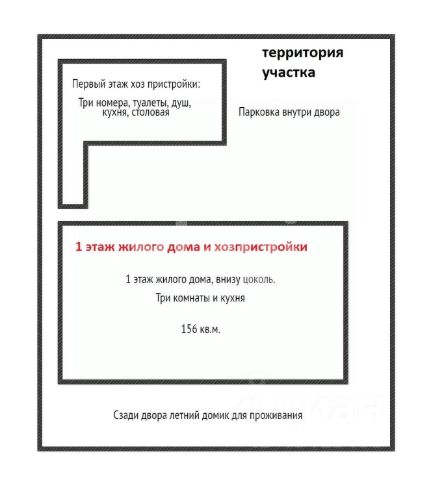 На участке имеются: баня-бочка (4х2.3м), летний душ, уличный бассейн d=5.7м с очистительным оборудованием, мангальная зона, уличная обеденная группа, садовые качели-диван, плодовые деревья (персик, гранат, слива, черешня), дополнительный домик для проживания (6х3.6м + навес, возможно использовать для хозяйственных нужд).