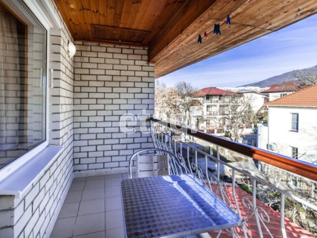 Большая (мастер) спальня площадью почти 22м2, собственная гардеробная комната площадью 5,5м2 и ванная комната 4,6 м2, балкон площадью 4,8м2 с видом на двор и бассейн.