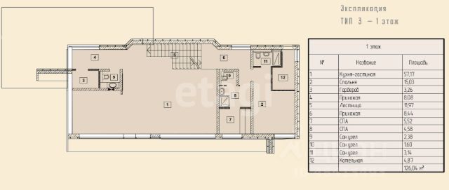 Стиль — скандинавский дизайн, светлые стены покрыты венецианской штукатуркой,паркетная доска на потолке и стенах из Югославии, создает тепло и уют, пол устлан редкой красной глиной.