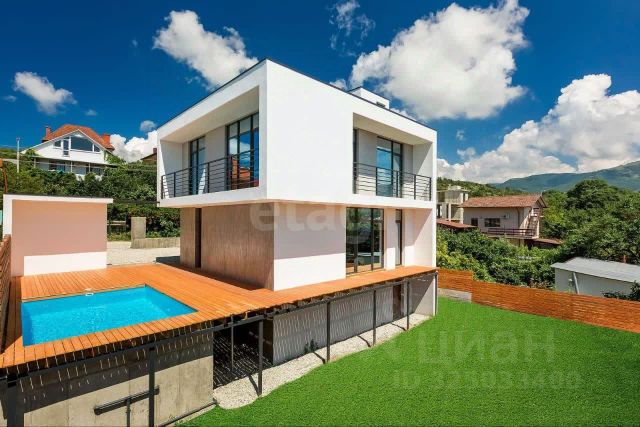 В продаже современный дом с бассейном, общая площадь 254 кв.м на участке 4,6 соток. Дом построен, сдан (фото готового дома), отделка получистовая, внутренний ремонт возможен по запросу покупателя. Дом 2 этажа, кухня-гостиная, гардеробная, 3 спальни, 2 санузла + цоколь 35 м.кв. Есть выход на эксплуатируемую крышу - 3 этаж (возможно остекление или достройка 3-го этажа). Готовая терраса 58 м.кв. Бассейн с возможностью подогрева 5*3,2 метра. Балконы в каждой спальне, панорамный вид на горы, море, на весь Геленджик, гольф поля. Расположен в районе гольф-клуба, дорога асфальтированная. Парковка на 2 машиноместа, брусчатка 150 м.кв. Построен по проекту с учетом современных технологий. Поселок газифицирован, электричество - 15 кВт, скважина, станция биоочистки Топас. Окна "REHAU" с мультифункциональными стеклопакетами и тонировочным напылением. Установлены 3 камеры видеонаблюдения с просмотром через приложение на телефоне. Дом построен в 2022 г.. Дополнительно оплачивается комиссия с покупателя. Код пользователя: 42651 Номер в базе: 10162733
