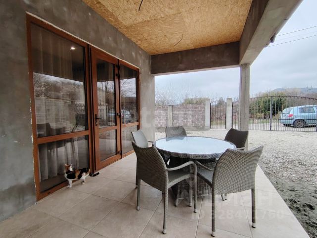 - Перед входом в дом большая веранда под крышей (40 кв.м.) с диваном и столиком.