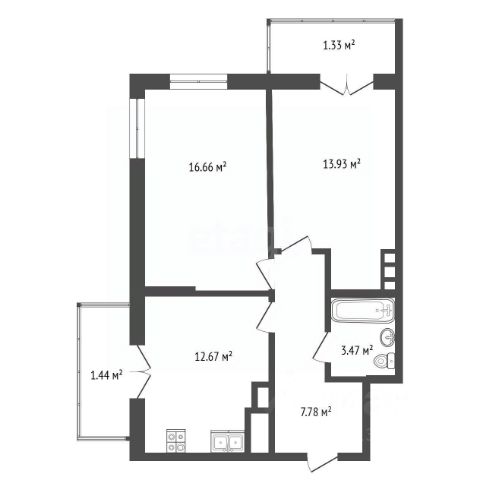 • ✅ Минимальная площадь: 21,5 м²