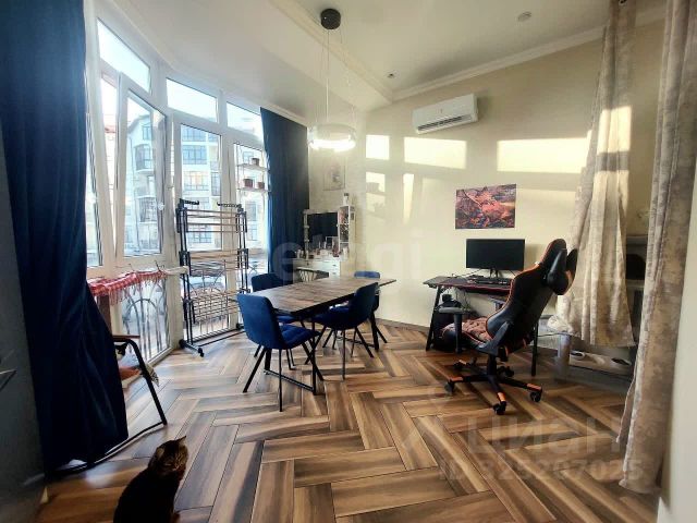 Продается уникальная квартира в новом жилом комплексе "Черноморский". Эта просторная однокомнатная квартира, по сути, больше, чем обычная студия, благодаря отсутствию двери и продуманной планировке. Главная изюминка — это стенка-шкаф-купе, достигающая высоты 3 метров и обладающая огромным объемом для хранения.