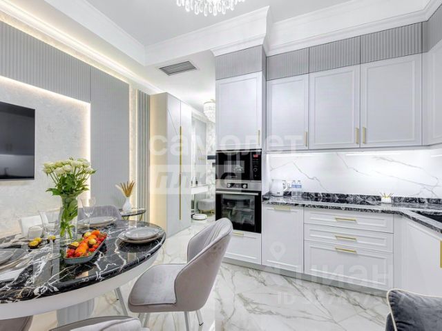 Арт. 128894139 Квартира мечты для самых взыскательных покупателей! Красивая, уютная и полностью укомплектованная для жизни и отдыха квартира, с дорогим и качественным ремонтом, всего в 50 метрах от ласкового морского берега ждёт своего нового владельца! Расположена квартира на комфортном 2 этаже одного из лучших жилых комплексов курорта "Бриз". Представьте свою жизнь среди красоты пицундских сосен, где Вы наслаждаетесь утренними прогулками вдоль Набережной и вечерним отдыхом на побережье, слушая шум волн... Это предложение идеально подойдёт тем, кто ценит комфорт, обладает изысканным вкусом и мечтает жить у моря, наслаждаясь спокойствием и красотой каждого дня. Окна выходят на северо-западную сторону благодаря чему квартира не нагревается летом и принимает закатные солнечные лучи. В ЖК "Бриз" реализована система центрального кондиционирования на базе системы чиллер-фанкойл. А в самой квартире, для сохранения максимального полезного пространства установлен потолочный фанкойл, совершенно незаметный в интерьере. Устройство поддерживает оптимальную температуру воздуха в любое время года, распределяет очищенный воздух через решетки системы кондиционирования в зоне спальни и гостиной. Для доступа к внутренним элементам конструкции и сезонного обслуживания фильтра организован сервисный люк. В межсезонье теплом квартира обеспечена благодаря теплому полу с четырьмя контурами, которые обогревают отдельные площади квартиры абсолютно автономно. Параллельно система отопления продублирована внутрипольными конвекторами вдоль панорамных окон. Оконные системы усилены качественной фурнитурой, которая фиксирует и защищает открытые окна от порывов ветра. Также окно оборудовано раздвижной москитной сеткой. В квартиру заведен высокоскоростной интернет. Входная группа оборудована умным видео-домофоном с поддержкой приложения через смартфон. Мебель изготовлена по индивидуальному заказу так, что каждый сантиметр в квартире использован максимально эффективно. Мебельные фасады от производителя "Томские мебельные фасады", столешницы консолей в спальне и гостиной изготовлены из натурального камня. Над кроватью эксклюзивное гипсовое панно ручной работы. В зоне гостиной стол со столешницей из натурального итальянского мрамора. Столешница и фартук кухонной зоны сделаны из премиального натурального гранита из Индии. Кухня укомплектована техникой - духовой шкаф, вытяжка, микроволновая печь, посудомоечная машина, встроенный холодильник. Смеситель японского производителя OMOIKIRI. Каменная мойка. Пол покрыт широкоформатным керамогранитом. Потолок и стены отделаны шумоизоляционным материалом. Плинтуса из натурального камня. Для зонирования пространства использована межкомнатная перегородка оригинальной системы ARISTO - из прочного усиленного стекла и фурнитурой из первичного анодированного алюминия. Она отличается безупречно плавным и тихим ходом благодаря специальному верхнему ролику. Потолочная подвесная перегородка не имеет под собой направляющих, поэтому на п