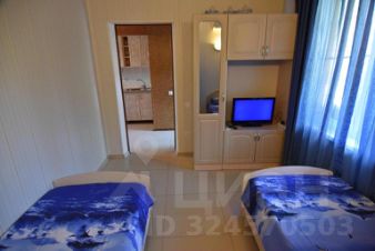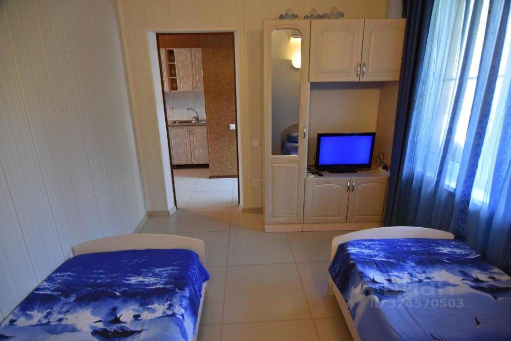 Двухкомнатная квартира с изолированными спальнями. Вход в квартиру с террасы в коридорчик, переходящий в кухню. Две изолированные спальни. В каждой по 2 односпальных кровати, тумбочки, шкафы, телевизоры, кондиционеры. На кухне: кухонный гарнитур, микроволновка, холодильник, стол, стулья, вся необходимая посуда. На балконе- стол, стулья.
