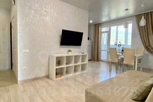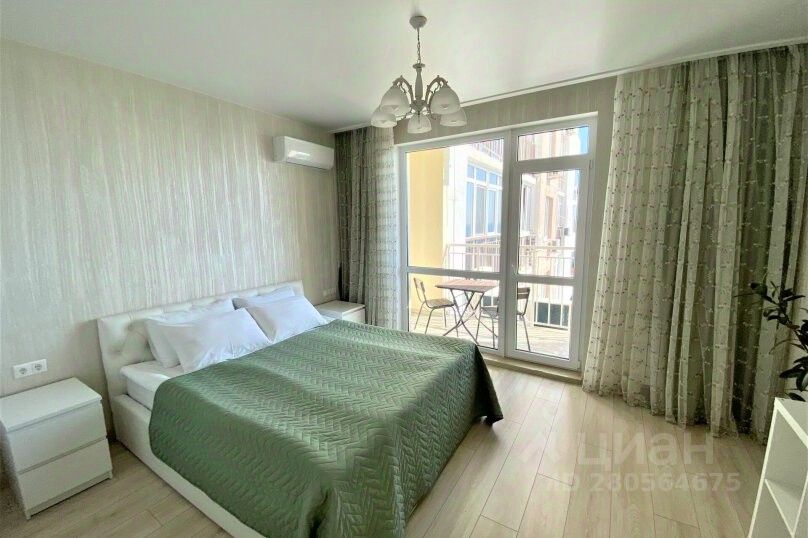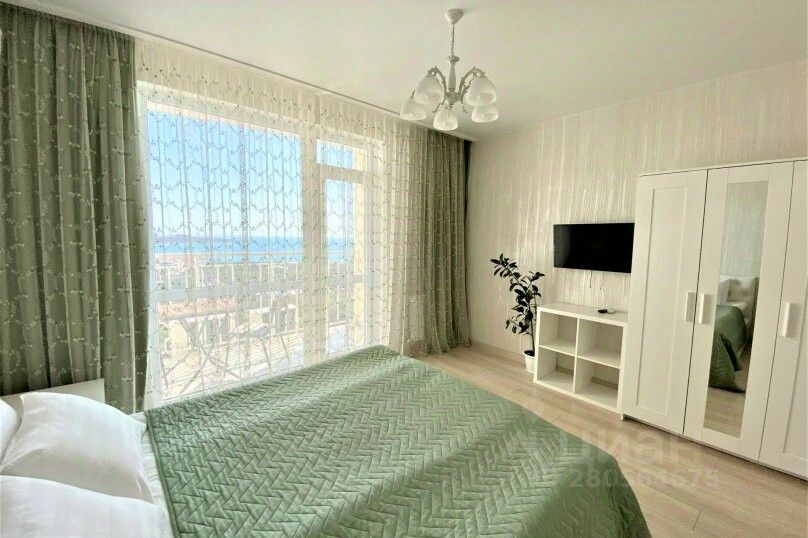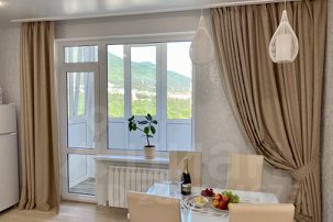 1-комнатная квартира (евродвушка) с изолированной комнатой, кухней - гостиной, двумя балконами (застекленным с видом на горы и открытым с видом на море) идеально подойдет как для двоих влюбленных, так и для семьи с детьми. Окна с кухни - гостиной выходят на горы, окно в спальне панорамного вида выходит на Геленджикскую бухту и город.