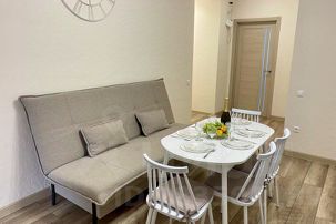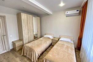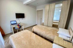 Для комфортного размещения гостей в большой комнате имеется двуспальная кровать, в другой комнате две односпальные кровати в кухне-гостиной диван - кровать, что позволяет разместиться до 6 человек. С животными размещение запрещено. Курить можно в строго отведенном месте (открытый балкон).