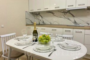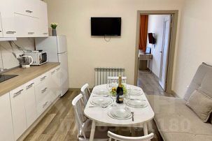 * вся необходимая бытовая техника (стиральная машинка, кондиционеры в комнате и на кухне, микроволновка, холодильник, телевизоры в комнате и на кухне, эл.чайник, фен) посуда и столовые приборы;