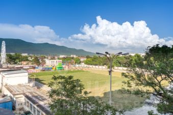 Рядом городской парк развлечений, много разных кафе и ресторанов.