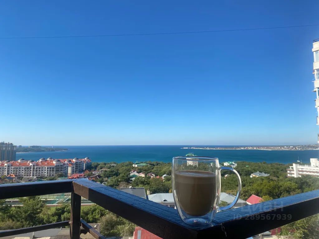 Уютная и просторная студия с шикарным видом на море. Большая открытая лоджия с зоной для отдыха.