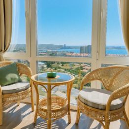 Уютная квартира со всем необходимым для отдыха, прекрасный вид с большого балкона. Нет проблемных соседей, большая стоянка. Предоставление отдыха на частной территории с шикарным басеином, детской игровой площадкой, комната детской анимации и все это входит в стоимость вашего проживания, бесплатные шезлонги на нашем пляже.