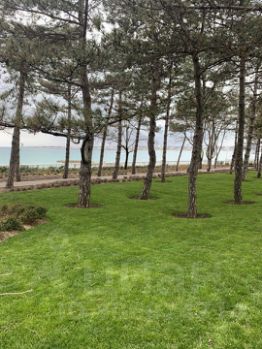 До пляжа и набережной 300 м , получается 5 минут пешком по ровной асфальтированной дороге мимо сосен и каштанов,