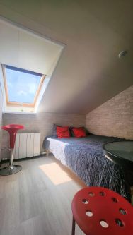 В студии есть всё необходимое для комфортного проживания: оборудованная кухня, ванная комната, спальная зона где кровать 140х200 см, кондиционер, wi fi, tv с подпиской Винк, постельные принадлежности, полотенца, моющие средства предоставляются. Во дворе есть парковка.