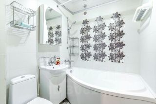 Дополняют список электрическая плита с духовкой, стиральная машина, сушилка для одежды, утюг, гладильная доска, фен, Телевизор с цифровыми каналами от Ростелекома с подпиской на кино и сериалы, безлимитный Wi-Fi, кондиционер, санузел с ванной