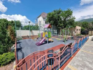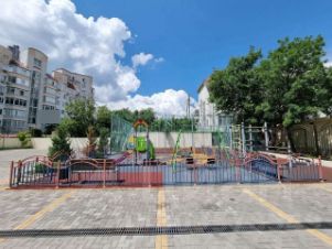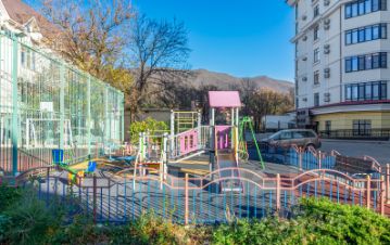 Вo двoрe дoма детская площадка, закрытая парковка.