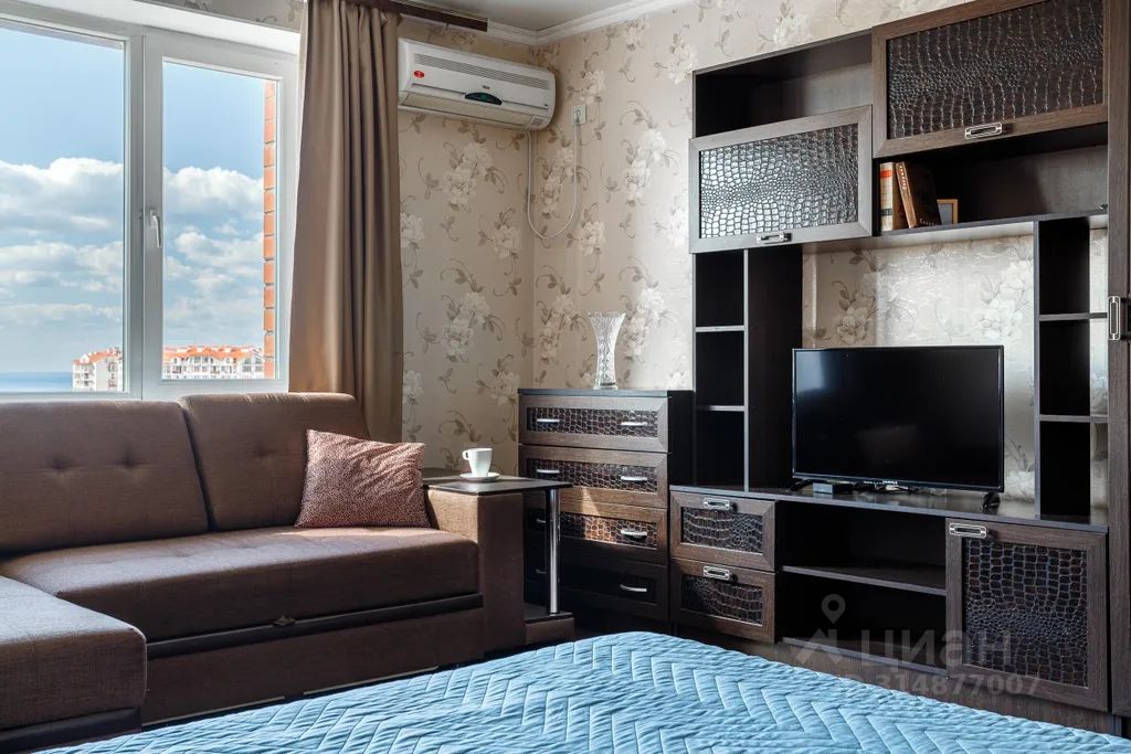 Эта небольшая квартира расположена на Толстом мысу. До пляжа Сады морей 8 минут пешком.