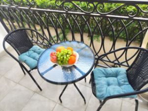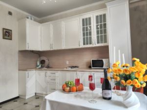 Квартира оснащена всем необходимым для вашего комфортного отдыха- новая кровать и мебель, Смарт ТВ, вся бытовая техника и посуда, хлопковое постельное белье и полотенца, халаты. Уютный балкон с видом на фонтан,магазин Табрис и Перекресток, изысканные рестораны, лучший ночной клуб, дельфинарий- все в шаговой доступности.