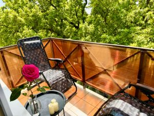 - Большой балкон с видом на море, утопающий в зелени, выходящий на солнечную сторону.