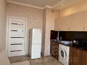 Кухня: раскладной диван, стиральная машина, микроволновая печь, электрочайник, газовая печь, двухкамерный холодильник, обеденный стол, кондиционер, посуда, столовые приборы