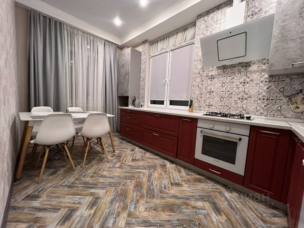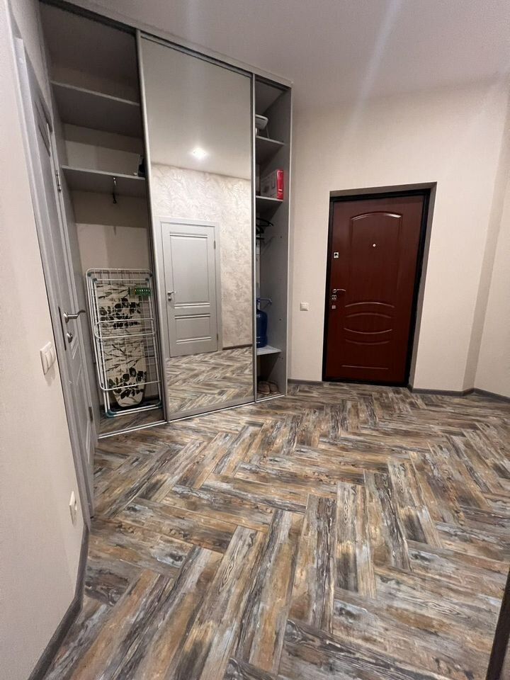 Теплый пол, газовый котел, глубокие большие встроенные шифоньеры в коридоре и спальне , два окна в кухне, в спальне дверь - выход на балкон , кровать 1600/2000 мягкий подголовник, необходимая посуда , газовая печь , духовой шкаф, микроволновая печь, большой холодильник, гладильные принадлежности,ванна, бак для белья , сушилка