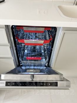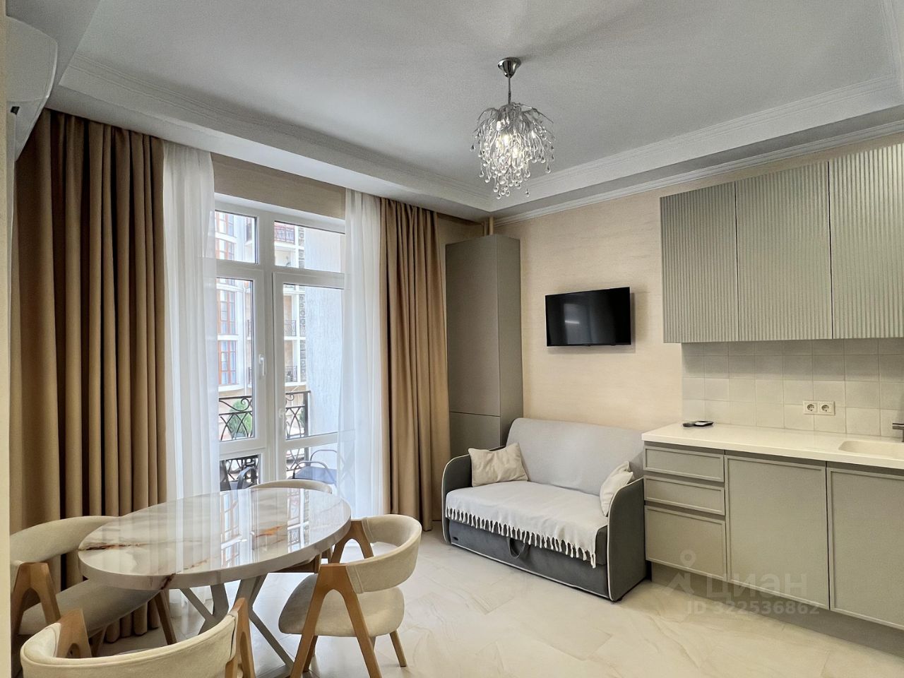 Кухня - массив дерева крашенный фасад, каменная столешница с интегрированной раковиной, посудомоечная машина и техника Европейского качества и производителя Kupersberg и LG. Доп место - диван с ортопедическим основанием.