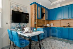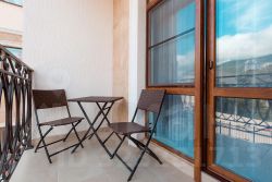 Апартаменты с дизайнерским ремонтом, балконом с зоной отдыха и видом на горы.