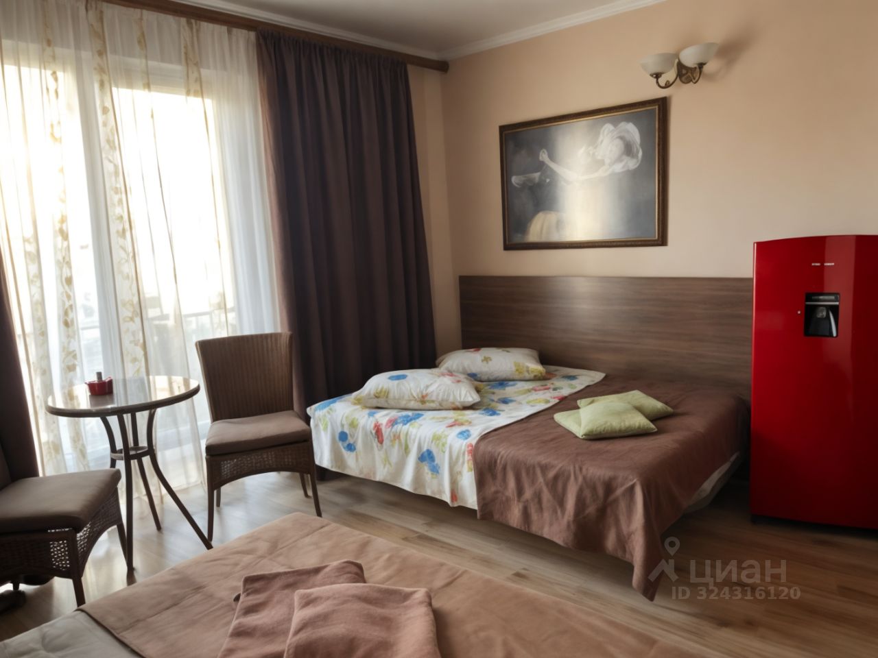 Номер оснащён - 2 двуспальные кровати, шкаф, прикроватные тумбочки, туалетный столик, зеркало, сплит система, холодильник, телевизор, сейф, Wi-Fi, кухня на этаже общая. Санузел в номере. В ванной -комплект полотенец, косметический набор средств личной гигиены, душ, фен, тапочки. Гладильные принадлежности на этаже. Номер с выходом на балкон, где вы сможете насладиться свежим воздухом и прекрасными видами Геленджика.