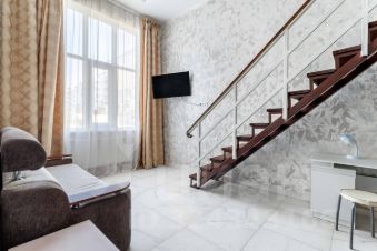 На втором этаже гостиной находится уютная зона отдыха, где вы сможете уединиться и насладиться тишиной. Высокие окна в квартире пропускают много естественного света, создавая приятную атмосферу и ощущение простора. Эта квартира станет вашим уютным уголком, где вы сможете расслабиться и насладиться каждым моментом.