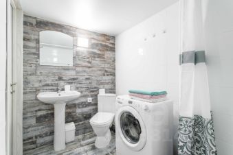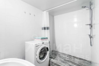 Ванная комната (совмещенная): душ, раковина и туалет, стиральная машина.