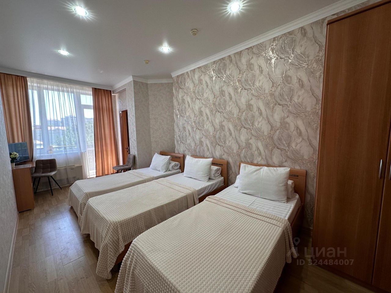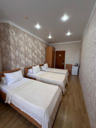 Уютный номер для 3 гостей, оборудованный всем необходимым: три односпальные кровати, телевизор, шкаф, полотенца, постельное белье и санузел с душем.