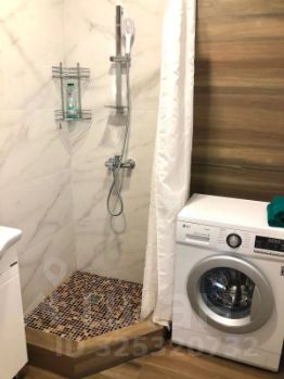 В сан узле горячий душ, стиральная машина, раковина, фен, полотенца, мыло, гель для душа.
