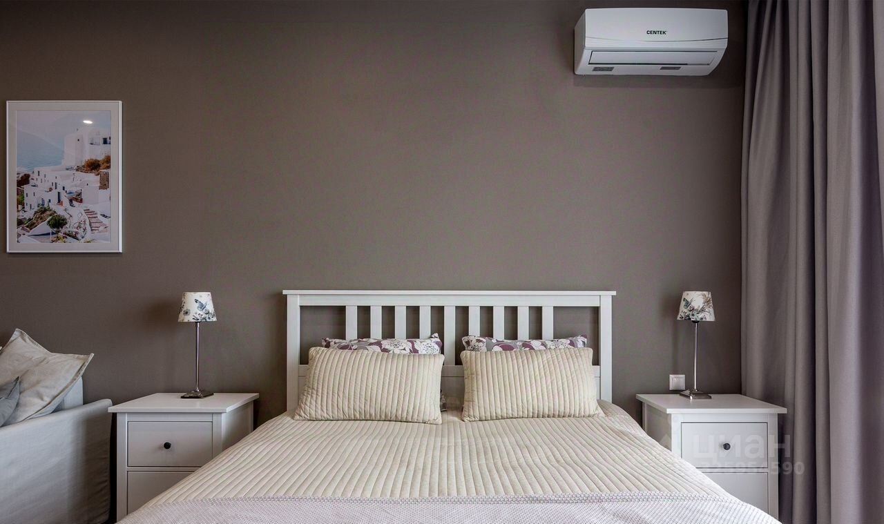 Для Вашего комфортного отдыха в квартире: отдельная спальня с большой двуспальной кроватью, двуспальным диваном, гардеробной комнатой, комодом для вещей, туалетным столиком, телевизором. В кухне-гостиной двуспальный диван-кровать, обеденный стол с шестью стульями, телевизор. На кухне холодильник, варочная панель, духовка, посудомоечная машина, микроволновая печь, электрический чайник. В каждой комнате кондиционер. В санузле душевая кабина, стиральная машина, фен для волос. Также в квартире есть сушилка для белья, гладильная доска, утюг, пылесос, накопительный бак для воды, постельное белье и полотенца. Дополнительно предоставляется детская кроватка для малышей и высокий стульчик для кормления. Интернет/Wi-Fi бесплатно + кабельное ТВ. В кухне-гостиной, коридоре, санузле тёплый пол. Размещение до 6 человек, без домашних животных.