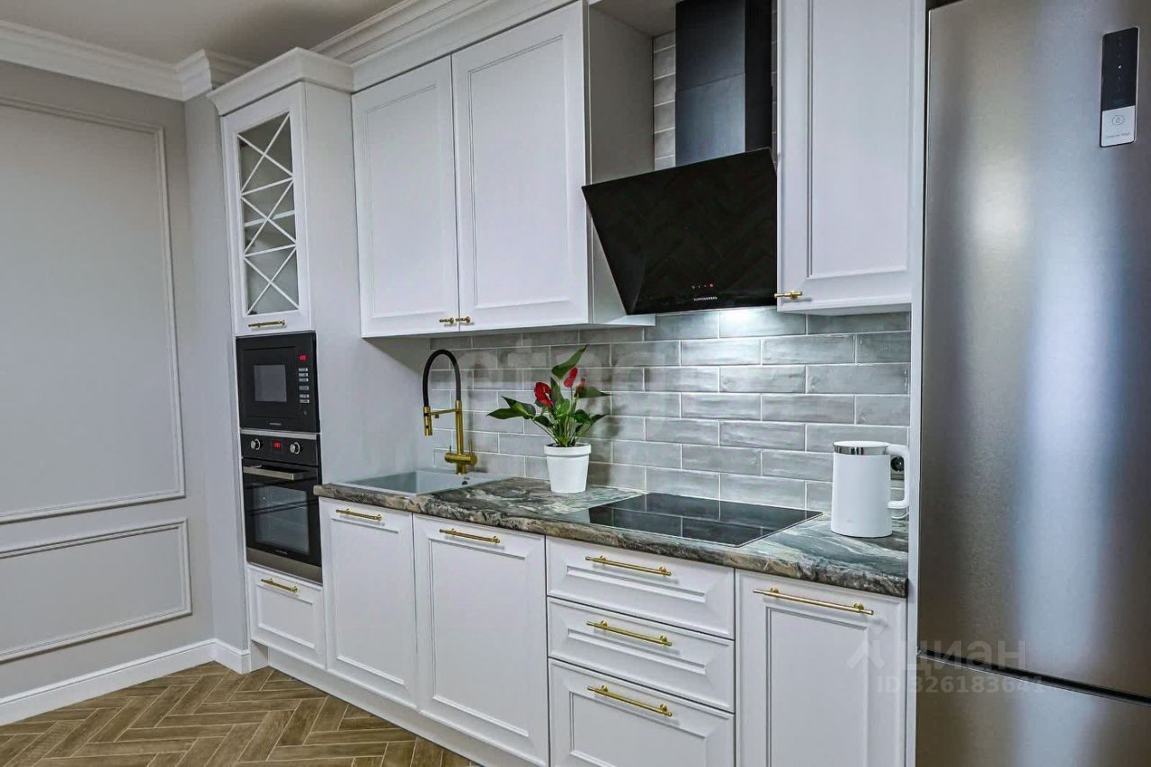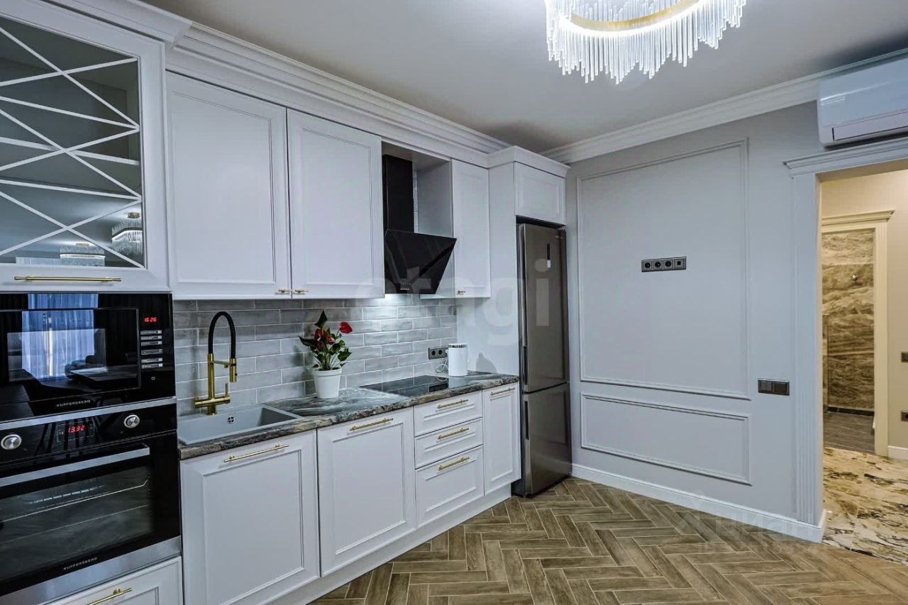 Для комфортного проживания в наличии вся необходимая мебель и техника : кондиционеры, TV (Smart) в каждой комнате, холодильник, СВЧ, индукционная плита, вытяжка, эл.чайник , кухонные принадлежности, посуда, столовые приборы, и пр., фильтр для воды, стиральная машина , эл. полотенцесушитель, утюг с парогенератором, гладильная доска.
