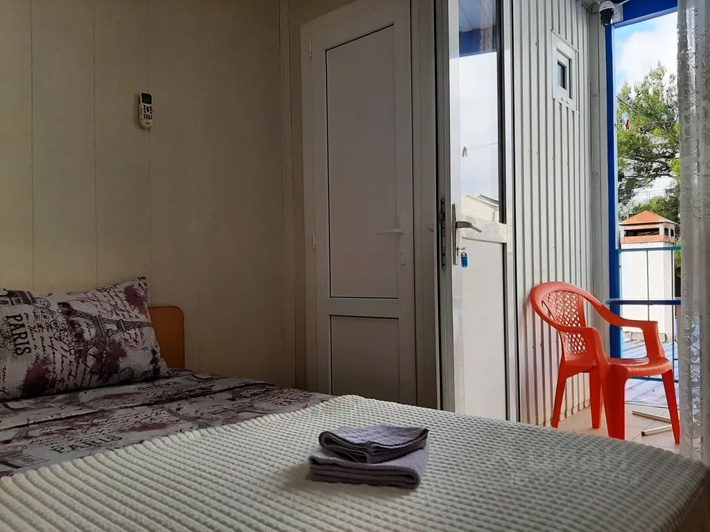 Двухместный номер стандарт, в 7 мин. Ходьбы до моря и набережной. Все номера просторные, светлые, уютные, сделан свежий ремонт. В каждом номере имеется свой санузел. Гостям предоставляется всё необходимое для комфортного проживания. В каждом номере имеется сплит система, телевизор, холодильник, интернет. Из каждого номера выход на просторный балкон с летней мебелью. Имеется оборудованная общая кухня на 4 номера. Кухня просторная с новым кухонным гарнитурой, со всей необходимой бытовой техникой: четырёхкомфорочная газовая плита, микроволновка, чайник, телевизор, кондиционер, посуда, обеденная зона, стол, стулья. Перед домом имеется стоянка на 4 авто.