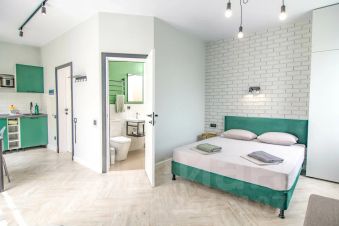 В центральной части города, в 12- 15 минутах ходьбы от моря и новой красивой набережной находятся Студии "НОВА " . Студия новая— отличный современный ремонт, вся мебель и техника новые. ТВ смарт. Балкон. Закрытый двор, специально для авто путешественников организована парковка при домовая на 5 машин, также платно в 2х минутах хоть бы . Номера семейные. На территории есть бассейн и зона барбекю