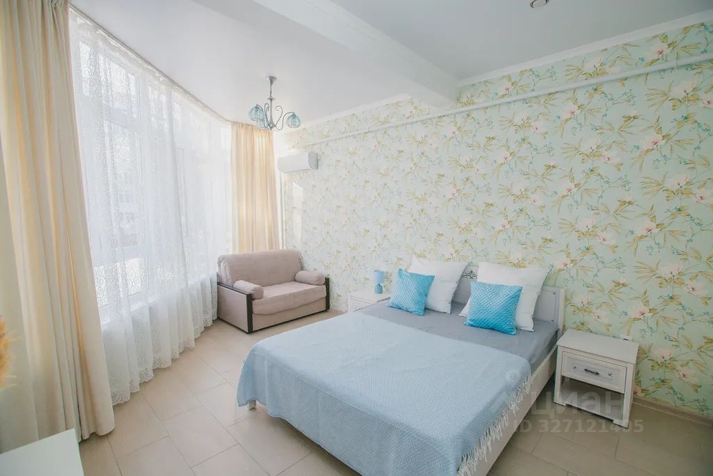 В квартире 5 спальных места: кровать 160х200, диван-кровать 140-200, диванчик -кровать 120 см. Балкон отсутствует.