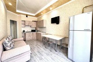 Чайник, холодильник, посуда, стиральная машина, фен, гладильная доска, утюг, сплит система(в спальной и в кухне), телевизора два (SMART TV), бесплатный Wi-Fi.