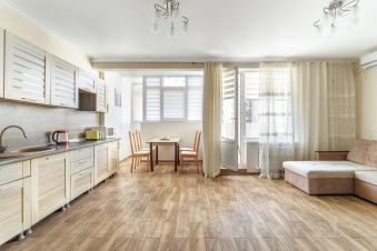 Предлагается в аренду квартира с приятным видом на море и панораму города. Здесь 600 м до набережной. Район пансионата им. Ломоносова. Набережная с галечным пляжем, пицундской сосной, благоустроенная. В квартире можно разместиться 4 гостям, есть накопительная система воды. Приятным бонусом выступает балкон с видовыми характеристиками. На территории детские площадки, паркинг, магазины, мед. клиника, остановки.