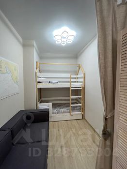 Детская с 2х ярусной кроватью помещена в отдельную зону, которую можно зашторить. Каждое спальное место 60 х 180 см.