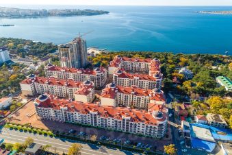 Закрытая территория, 50 метров до моря, 2 продуктовых магазина, кафе, большая детская площадка, фитнес премиум-класса, свой бассейн, отличная парковка, фонтан, зелёные зоны