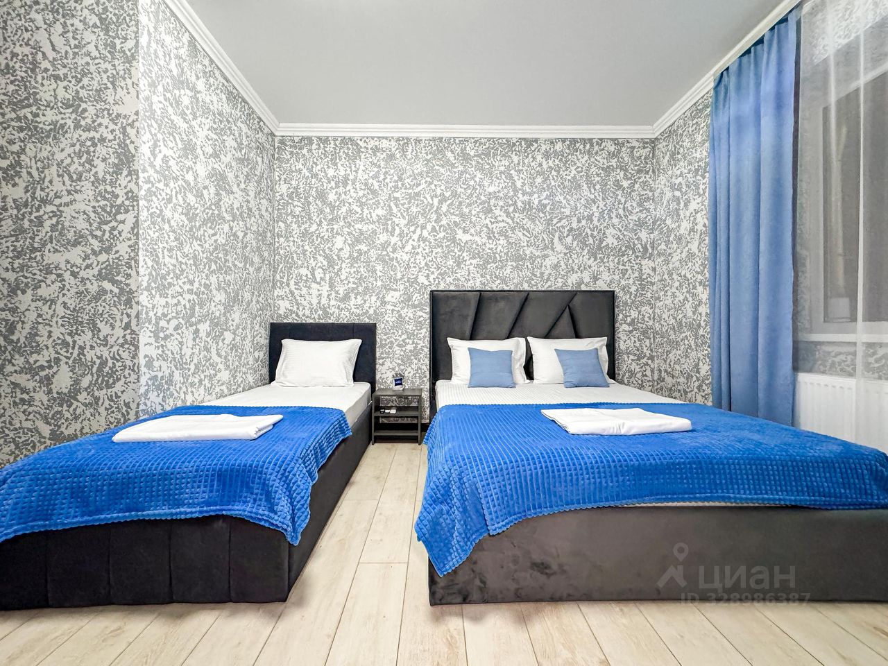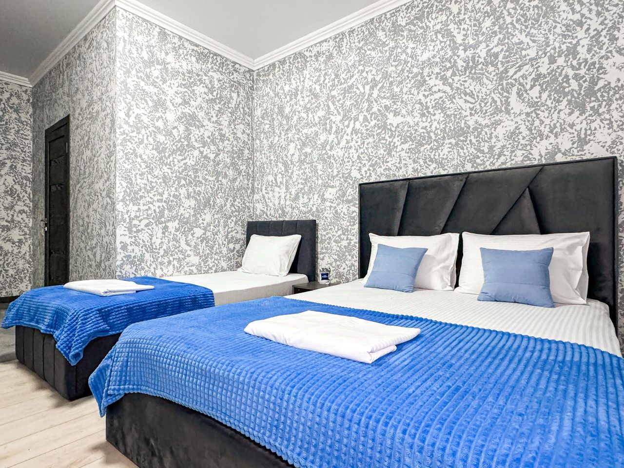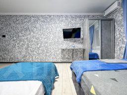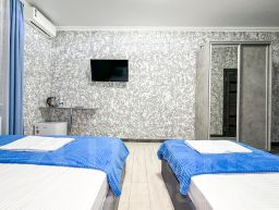 Достаточно просторный однокомнатный номер, где можно разместить до 3 гостей. В номере двуспальная кровать + односпальная кровать.