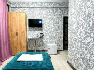 Однокомнатный номер со своим душем и туалетом. Самый недорогой номер среди имеющихся из за отсутствия в номере окна.