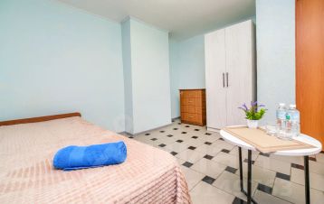 Уютный 2-х местный номер на 3-м этаже. В номере есть все необходимое для проживания: мебель, две кровати, сплит-система. Душ и туалет общие на 3 номера. Есть возможность поставить доп. Место. В общем коридоре, холодильник, чайник. Для приготовления еды можно воспользоваться общей кухней на территории, оборудованной всем необходимым. Предоставляется постельное бельё, полотенца, туалетная бумага, жидкое мыло. Желаем приятного отдыха!