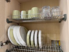 Холодильник, электрочайник, посуда и столовые приборы