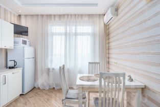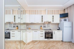 Кухня-гостиная оборудована посудомоечной машиной, варочный панелью, электрочайником.
