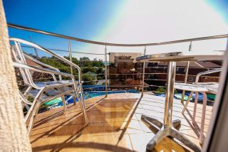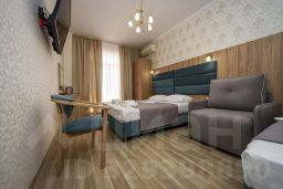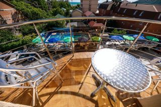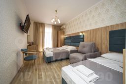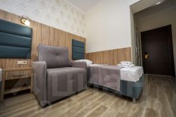 4-местный номер категории делюкс. В комплектацию номера входит: платяной шкаф, галошница, полка для багажа, прикроватные тумбочки, индивидуальный сейф, кресло, столик с посудой, холодильник, чайник электрический, кондиционер, ЖК телевизор, санузел, душевая кабина, стационарный фен, балкон, стол со стульями, сушилка для белья.