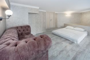 В квартире высокие потолки - 4 м, есть зона лофта, оборудовано 8 спальных мест, есть детская кровать, постельное белье, полотенца.