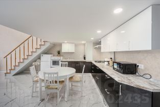 Кухня-гостиная оборудована посудомоечной машиной, варочный панелью, кофеваркой, электрочайником.